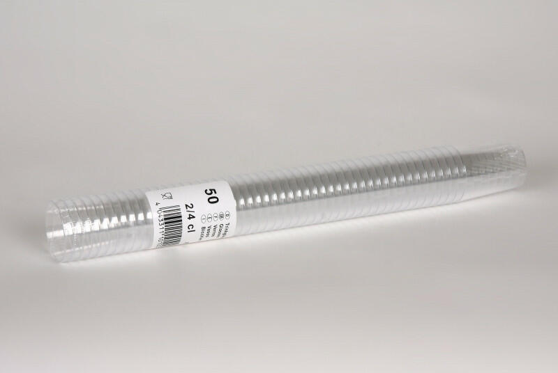 Átlátszó/ víztiszta műanyagból készült snapszos pohár, 50 db-os kiszerelésben. 2-4 cl-es űrtartalommal rendelkezik. Kiváló választás házi buliba, összejövetelekhez, kerti partyhoz.