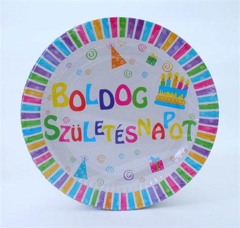 tányér "Boldog születésnapot felirattal" anyaga: papír a tányér átmérője: 23 cm kiszerelés: 6 db/csomag