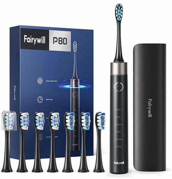 Gyártó: Fairywill Modell: FW-P80 (6EUFWP80BK+H6+8) Leírás: Gondoskodjon szájhigiéniájáról anélkül, hogy kockáztatná a zománc vagy az íny károsodását. A FairyWill P80 szonikus fogkefe hatékony tisztítást biztosít, és speciális érzékelővel van felszerelve, amely figyelmeztet, ha túl erősen mossa a fogait. Emellett 5 üzemmódot és intelligens időzítőt is kínál. A k