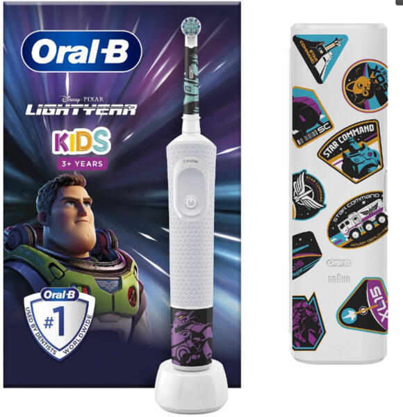 Az Oral-B Kids elektromos fogkefe már 3 éves kortól a Toy Story Lightyear karaktereivel biztosítja a szórakoztató fogmosást, mialatt kíméletes és hatékonyan tisztítja a fogakat. Az egyedülálló, gyermekbarát érzékeny mód védi az ínyeket és gyengéden tisztítja a fogakat. A fogkefe több lepedéket távolít el, mint egy hagyományos kézi fogkefe. A kézi elektromos fogkefe s