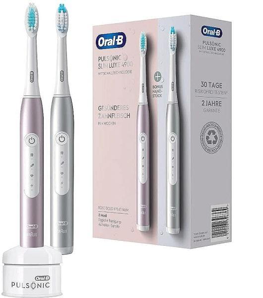 Gyártó: Oral-B Modell: Pulsonic Slim Luxe 4900 Leírás: Az Oral-B Pulsonic Slim Luxe 4900 szónikus fogkefe több lepedéket távolít el, mint a hagyományos kézi fogkefe, gyengéd technológiával és 31 000 ecsetfej mozdulattal. A megnyúlt kefefej vibráló, lekerekített sörtékkel gyengéd tisztítást és fehérebb fogakat biztosít. A fogkefe három tisztítási szinttel rendelkezik a