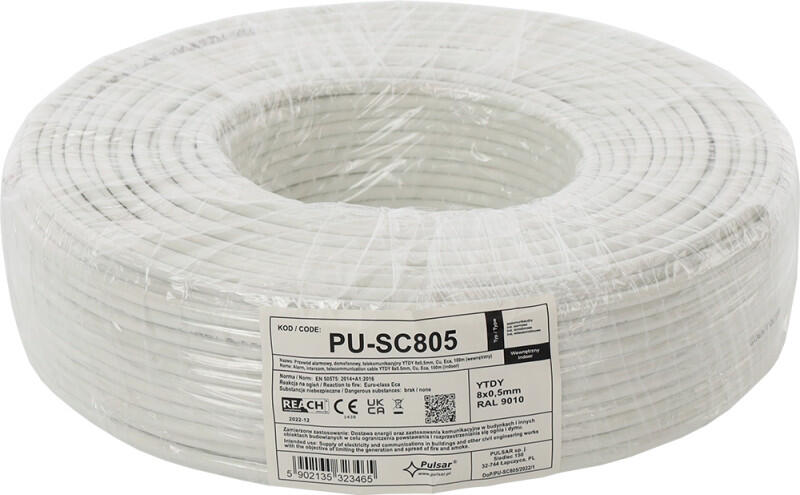 Riasztó kábel; 8 db ér 0,2 mm2 keresztmetszettel; réz; Eca (EN 50575); 100 fm Kábeltípus: alarm Anyag: sodrott réz Vezetőszám: 8x0.2 mm2 Árnyékolás: nincs Szigetelés: PVC Kábelhossz: 100 m Szín: fehér Adatlap