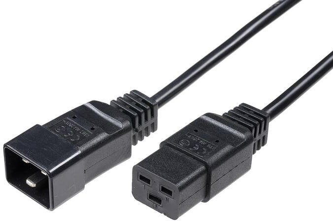 3 méteres C19/C20 tápkábel hosszabbító. Szín: Black Csatlakozó 1: C19 IEC 320 anya Csatlakozó 2: C20 IEC 320 apa Hossz: 3m H05VV-F3x1.5mm2 CU