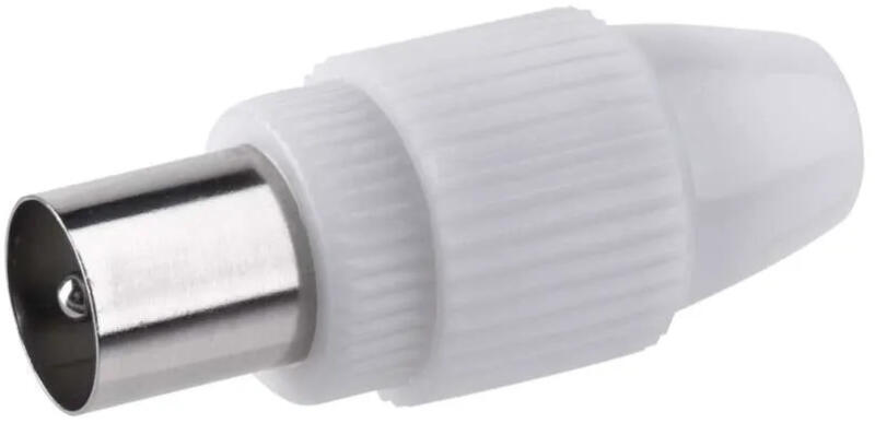 IEC csatlakozódugó koaxiális kábel csatlakoztatásához fehér szín, műanyag.
