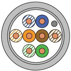 Erősített 2x0.5+6x0.22 riasztókábel (2x0.5+6x0.22) Sodrott belső erek (BC vagy CCA) HDPE érszigeteléssel, PVC köpennyel. Köpeny színe: Fehér Árnyékolás: fólia (Al) Belső erek: 7/0.20MM (0.22MMQ) + 16/0.20MM (0.50MMQ) Külső átmérő: 5.2mm 100m-es tekercsben Erősített 2x0.5+6x0.22 riasztókábel (2x0.5+6x0.22) Sodrott belső erek (BC vagy CCA) HDPE érszigeteléssel, PVC köpen