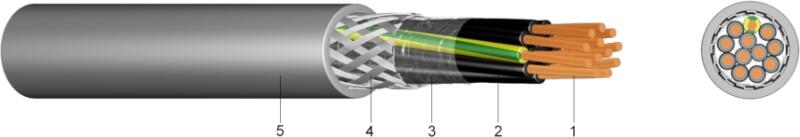 Árnyékolt jelző és működtető kábel ipari rendszerekhez. Általános felhasználású kábel, csepegő olajnak ellenáll. Flexibilis kivitele miatt alkalmas vibrációnak, mozgatásnak kitett megmunkáló gépek, eszközök bekötésére. Árnyékolt vezérlőkábel.