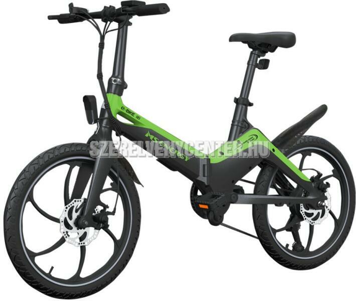 Tulajdonságok Modell: MS Energy eBike i10 Típus: folding eBike Kerék méret: 20" Maximális sebesség: 25 km/h Váz: összecsukható, alu Szín: fekete-zöld Motor: 250W Kijelző: LCD, vízálló Akkumulátor: 36V, 7.8Ah Töltési idő: 4-5 óra Hatótávolság: 45-50 km Fék: első és hátsó tárcsafék Maximális teherbírás: 120 kg Világítás: első és hátsó LED lámpa Súly: 20 kg M