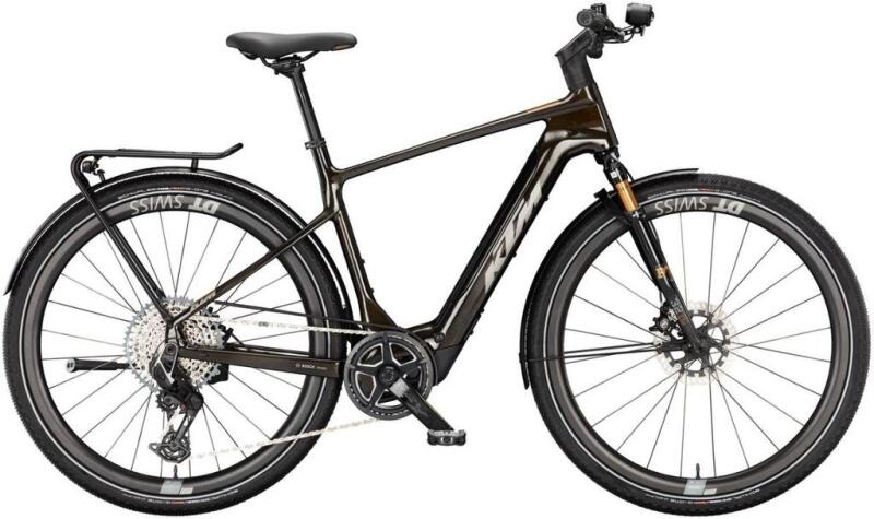 FIGYELEM!!! A képen a férfi vázas modell látható. A KTM Macina Sport SX Prime új mércét állít fel a trekking elektromos kerékpárok terén. A karcsú keret teljes egészében prémium karbonból készült , amely kivételes kivitelezést és rendkívüli könnyedséget mutat. kombinálva A kompakt Bosch Performance Line SX meghajtóval a Macina Sport SX Prime össztömege valamivel keve