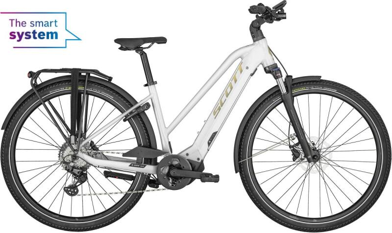 Trekking E-bike. Bosch Performance CX BES3 motor és 625Wh akkumulátor. Shimano Deore 10 sebességes hátsó váltóval. SR Suntour NVX 30 villával, és világítással felszerelve. SCOTT E-Sub 6061 aluminium váz Bosch Performance CX BES3 250W motor és PowerTube 625W akkmulátor Bosch Intuvia 100 Smart kijelző Shimano Deore 10 sebességes hátsó váltó SR Suntour NVX 30 NLO villa, 63 mm rug