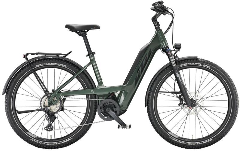 A KTM Macina Aera 671 LFC egy erőteljes városi terepjáró, ahol a munkába járás élmény lehet. Ez a különleges eMTB ötvözi a városi e-kerékpár kényelmét és az eMTB sportosságát. A Suntour XCR felfüggesztő villával, széles Schwalbe Johnny Watts gumiabroncsokkal és MTB által tesztelt Shimano Deore sebességváltóval az Ara 671 LFC előre meghatározott a terepbe való kirá