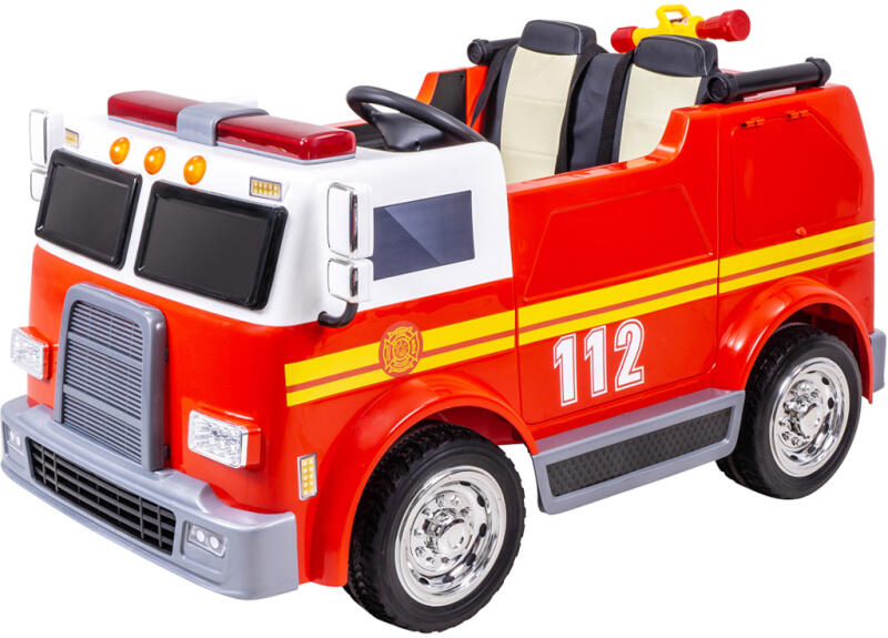 A két 45 wattos motornak köszönhetően a gyerekek elektromos autója 3-6 km/h sebességgel száguldhat a lejtőkön. Így a kis mentők gyorsan a helyszínen vannak, ha nehéz a helyzet - mint egy igazi hős. Az USB-porttal, AUX-csatlakozóval és SD-nyílással ellátott hangmodul pedig éppen a megfelelő ritmusokat kínálja. A kiváló minőségű EVA gumiabroncsoknak köszönhetően a tűz