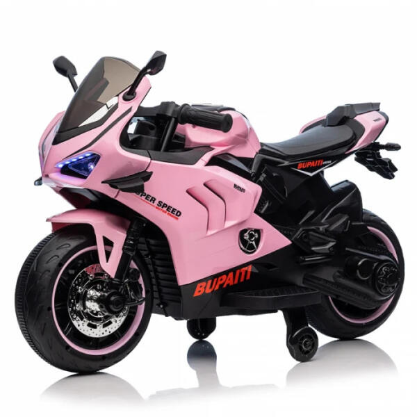 Elektromos motorkerékpár BDQ888 -Rózsaszín Igazi szórakozást nyújt a gyermek számára Felszereltség: - 2db 35W villanymotor - 12V - 4 Ah - Multifunkcionális kormány kürttel és zenelejátszóval - 1 személyes - Puha Eva gumi kerekek - Műanyag ülés - Levehető segédkerekek - LED világítási rendszer - Töltőt tartalmaz a csomag - Saját súly: 10 kg - Megerngedett összes súly:
