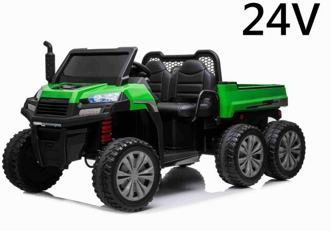 Elektromos Kisautó gyerekeknek Farm RIDER 6x6 24V! Hatalmas autó 2,4Ghz távirányítóval, lassú indulás-Soft Start rendszerrel és négykerék-meghajtással. ÚJDONSÁG: A Farm RIDER 4x4 hátsó lebillenthető tárolóhellyel van felszerelve! A RIDER 6X6 játékautó két idősebb gyermek számára is alkalmas, legfeljebb 60 kg teherbírással. A széles ülések és a hatalmas és lengéscs
