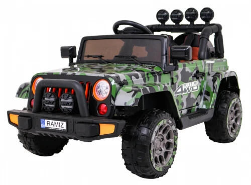 A Full Time 4WD jármű egy jól felszerelt, praktikus és biztonságos terepmodell gyerekeknek. Ajándékozzon kedves meglepetéssel gyermekét. A jármű minden kis és nagy autórajongó figyelmét felkelti majd. Motor: 4xRS390SP/12V/16000RPM(4x45W) Akkumulátor: 12V/10ah Távirányító: van Lámpák: elöl-hátul LED Hang: mp3, AUX, USB, SD Ülés: Öko bőr Kerekek: EVA hab Lengéscsillapít
