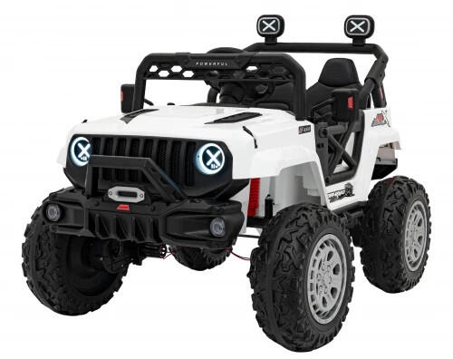 Gazdag felszereltségű akkumulátoros JEEP utánzat terepjáró gyerekeknek, 4 kerék meghajtás, extra csapágyazás, felhujható kerékkel. Ajánlott: 2-5 éves korig Gazdag felszereltségű akkumulátoros JEEP utánzat terepjáró gyerekeknek. Két nagy teljesítményű elektromos motor hajtja, amelyet akkumulátor táplál. A jármű gombos működtetésű hanghatásokkal, MP3 lejátszó beme