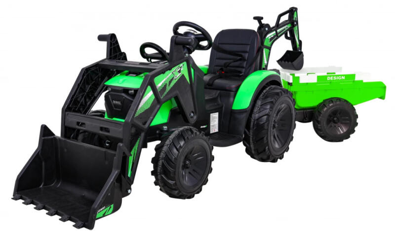 Ez az elektromos kistraktor ideális választás lehet gyermekek számára! Sportos megjelenésű elektromos kistraktor extra funkciókkal, melyek a gyermek szórakozását és örömét biztosítják! 1 személyes A jármű leírása Motor: 2x45W Akkumulátor: 12V/10Ah Távirányító: 2,4 GHz, 3 sebesség, Stop biztonsági gomb, Kerekek: EVA hab, elöl 28 x 11 cm, hátul 39 x 12,5 cm, Lámpák: