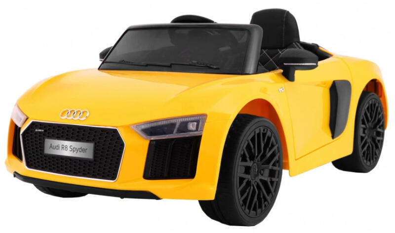 Audi R8 Spyder Ez a gyerekeknek szánt Audi R8 Spyder még jobban emlékeztet a felnőttek eredetijére – köszönhetően a kiváló minőségű felületnek, a részletekre való odafigyelésnek és a festett karosszériának . A festék használatának köszönhetően a szín élénk, többdimenziós és emellett tartósságával és ellenálló képességével is lenyűgöz. Márka: Audi Motor
