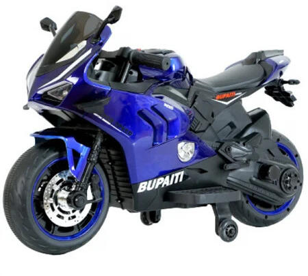 Elektromos motorkerékpár BDQ888 -Kék Igazi szórakozást nyújt a gyermek számára Felszereltség: - 2db 35W villanymotor - 12V - 4 Ah - Multifunkcionális kormány kürttel és zenelejátszóval - 1 személyes - Puha Eva gumi kerekek - Műanyag ülés - Levehető segédkerekek - LED világítási rendszer - Töltőt tartalmaz a csomag - Saját súly: 10 kg - Megerngedett összes súly: 42 kg