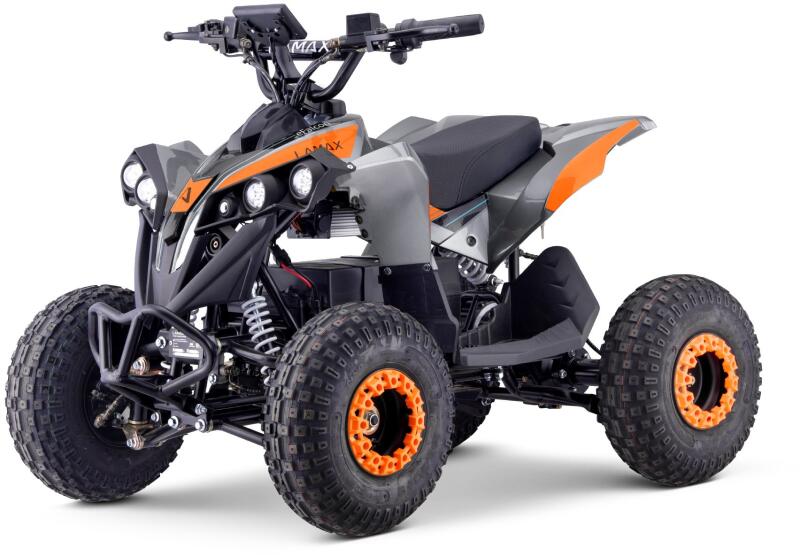 LAMAX eFalcon ATV50M elektromos quad 30 km hatótávolsággal, 33 km/h maximális sebességgel (6 vagy 17 km/h-ra korlátozható), 1200W-os szénmentes motor, 20.000mAh akku, akku töltöttségi szintjelző, LCD kijelző, nagyméretű 14"-os kerekek, első és hátsó felfüggesztés, hidraulikus fékek, nemkívánatos elindulás elleni védelem, első LED fényszórók, tartós szerkezeti kivitel
