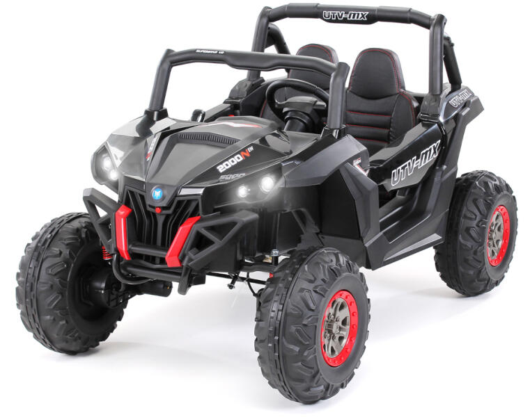 Akkumulátoros terepjáró gyerekeknek A Buggy Maverick Turbo nagyszerű választás, ha 2 gyermek számára alkalmas terepjáróra van szüksége. A kicsik biztosan élvezni fogják a kényelmes utazást egy Buggy terepjáróval. Motor: 4*200W =800W Akkumulátor: 24V7Ah x2 Távirányító: van Lámpák: elöl-hátul Hang: MP3, Bluetooth, AUX, USB, kürt, töltött dallamok, motor indító hang, g