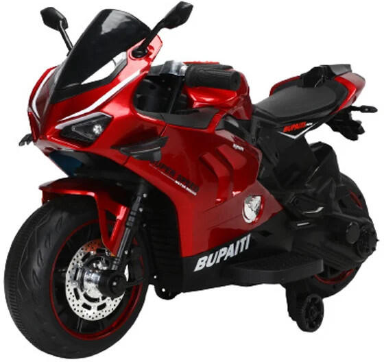 Elektromos motorkerékpár BDQ888 -Piros Igazi szórakozást nyújt a gyermek számára Felszereltség: - 2db 35W villanymotor - 12V - 4 Ah - Multifunkcionális kormány kürttel és zenelejátszóval - 1 személyes - Puha Eva gumi kerekek - Műanyag ülés - Levehető segédkerekek - LED világítási rendszer - Töltőt tartalmaz a csomag - Saját súly: 10 kg - Megerngedett összes súly: 42 kg