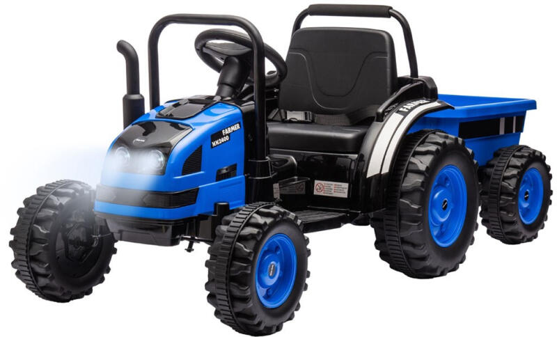 Akkumulátoros traktor Farmer pótkocsival, amelyben gyermeke felnőtt gazdának érezheti magát. Ez az ideális jármű 3-5 éves korú gyermekek számára. A traktorhoz pótkocsi is tartozik a további szórakozás érdekében. A fém biztonsági rácsok elöl és hátul, valamint a kémény/kipufogó utánzat, a traktor motorjának morgó hangja lehetővé teszi, hogy a kis sofőrök szabadjá