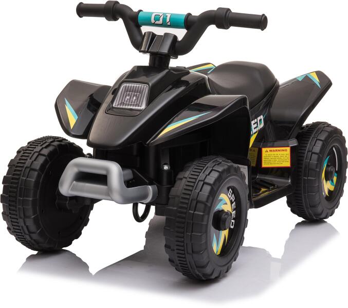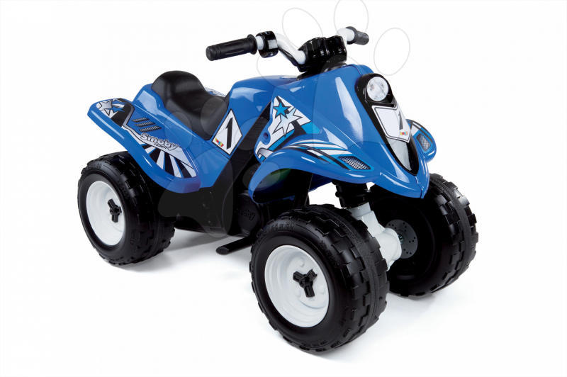 Akkumulátorral működő gyermek Smoby Quad Ralley elektromos négykerekű jármű. Kinézetével valóságos sportos négykerekűre emlékeztet feliratokkal és matricákkal. Gyerekeknek 2 éves kortól alkalmas. A gyermek kormánnyal irányítja a kis járgányt. Az indító gomb a jobb oldalon található. Robusztus és vonzó kinézetével a négykerekűn való száguldozás élmény lesz min