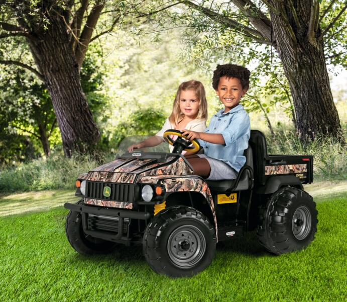 Barangolás, játék, camo szórakozás kettesben! Fantasztikus kétüléses elektromos haszonjármű 12V/12Ah/150Wh újratölthető akkumulátorral. A John Deere Gator HPX Camo azoknak a 3 éves és annál idősebb gyermekeknek szól, akik szeretnek csodálatos kalandokban részt venni. Minden felületen halad, még a legdöcögősebbeken is, és akár a 17%-os emelkedőt is legyőzi. AKKUMULÁTO