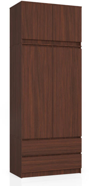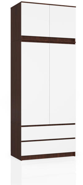 Modern és tágas magasított ruhásszekrény két ajtóval és két fiókkal, amely tökéletes tárolási megoldást kínál. A wenge és fehér színkombináció elegáns megjelenést biztosít, míg a 234 cm-es magasság maximális tárolókapacitást nyújt. Maximális tárolókapacitás elegáns kivitelbenEz a magasított ruhásszekrény tökéletes kombinációja a funkcionalitásnak és a