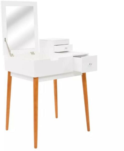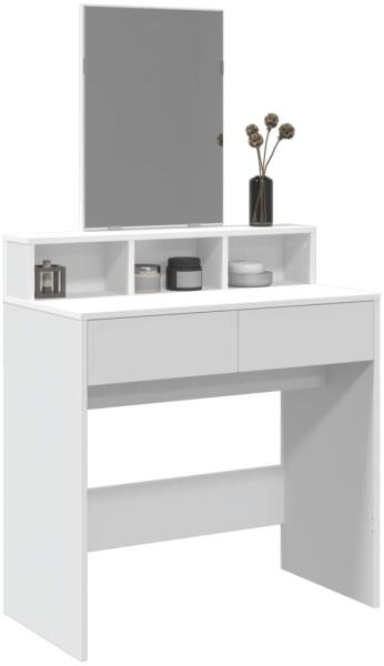Az időtlen és kifinomult megjelenésű, tükörrel ellátott fésülködőasztal hálószobája berendezésének remek kiegészítője lehet, miközben kozmetikai eszközei mindig kéznél vannak! Tartós anyag: A szerelt fa kivételes minőségű, sima felületű, szilárd, stabil, és ellenáll a nedvességnek. Ez a szerelt fából készült pipereasztal könnyen tisztítható. Bőséges táro