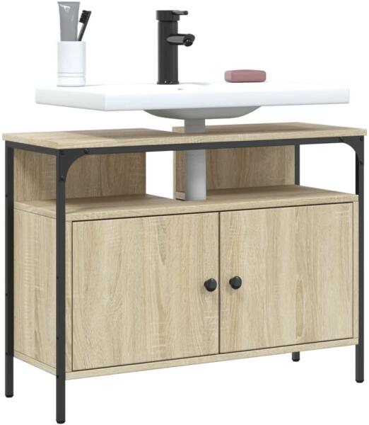 Ez a fürdőszobai mosdószekrény fürdőszobája nagyszerű kiegészítője lesz, rendezett és lenyűgöző megjelenést kölcsönözve neki! Masszív szerkezet: A porszórt acél és a szerelt fa masszív szerkezetet biztosít, valamint erős támaszt nyújt a tárgyak számára. Bőséges tárolóhely: A fürdőszobai mosdószekrény bőséges helyet biztosít az alapvető pipere- és fürdő