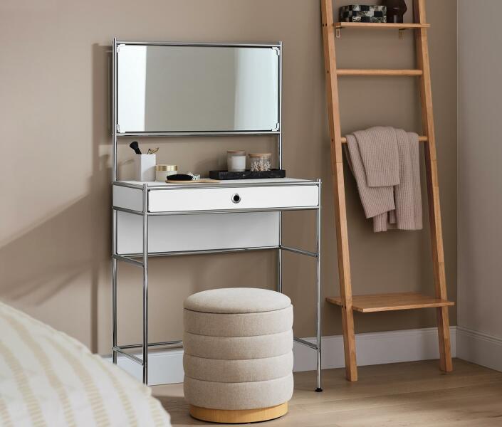 Ez a fésülködőasztal időtlen, kifinomult megjelenést visz hálószobájába. A tükörrel ellátott sminkasztal hálószobája nagyszerű kiegészítője lesz, miközben kézközelben tarthatja kozmetikumait! Prémium minőségű anyag: A szerelt fa kivételes minőségű, sima felületű, szilárd, stabil, és ellenáll a nedvességnek. A szerelt fából készült pipereasztal könnyen tisz