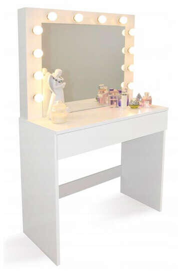 A tükörrel és világítással ellátott öltözőasztal minden bizonnyal remek ajándékötlet minden nő számára. Számos nyaklánc, gyűrű, karkötő fér el egy tágas fiókban. A 12 LED-es lámpa bájt és eleganciát kölcsönöz, és a külső tükör, mint mindenki tudja, minden hálószobában elengedhetetlen kellék. Minden nő HOLLYWOOD színésznőnek fogja érezni magát Érdemes