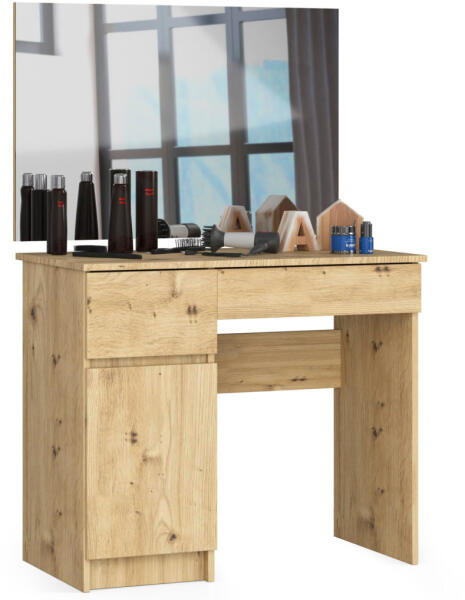 Modern, tükrös fésülködőasztal artisan tölgy színben, két fiókkal és tágas tárolóhellyel. Tökéletes választás a hálószobába vagy szépségszalonba, praktikus kialakítással és elegáns megjelenéssel. Elegáns és praktikus fésülködőasztal a mindennapi szépségápoláshozAz AKORD CLP P-2/SL fésülködőasztal a modern design és funkcionalitás tökéletes ötvözete.