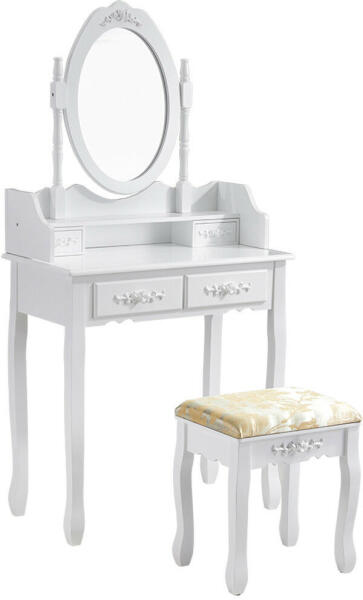 Ez a divatos fésülködőasztal-szett időtlen, kifinomult stílust visz hálószobájába. A székkel ellátott fésülködőasztal hálószobája tökéletes kiegészítője lesz, miközben kézközelben tarthatja kozmetikumait! Stabil anyag: A szerelt fa kivételes minőségű, sima felületű, szilárd, stabil és ellenáll a nedvességnek. Bőséges tárolóhely: A sminkasztal bőséges hely