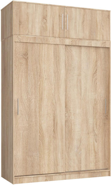 Praktikus és stílusos tolóajtós szekrény felső rátétszekrénnyel, amely tökéletes tárolási megoldást kínál. A sonoma tölgy színű, laminált bútorlapból készült szekrény alumínium sínrendszerrel és nyolc polccal rendelkezik. Maximális tárolókapacitás elegáns kivitelbenEz a modern tolóajtós szekrény a praktikus tárolás és az esztétikus megjelenés tökéletes ko