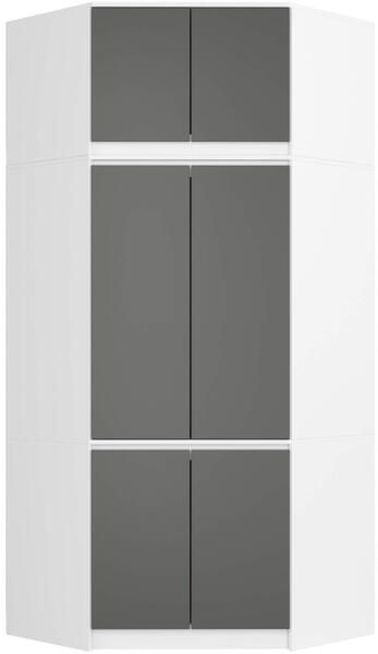 Modern sarok ruhásszekrény felső tárolórésszel, amely tökéletes megoldást nyújt a ruhatár rendszerezésére. A fehér korpusz és szürke ajtók elegáns kombinációja, valamint a 9 polc és ruhaakasztó rúd maximális tárolási lehetőséget biztosít. Maximális tárolókapacitás elegáns kivitelbenEz a 235 cm magas sarok ruhásszekrény tökéletes választás azoknak, akik nagy