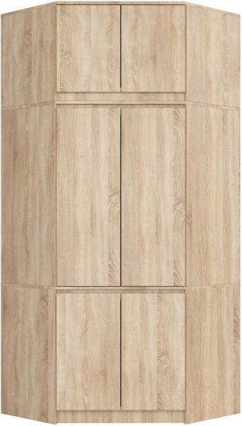 Tágas, 6 ajtós sarok ruhásszekrény felső szekrénnyel, amely tökéletes tárolási megoldást kínál. A Sonoma tölgy kivitel és a minőségi laminált lap anyag elegáns megjelenést és tartósságot biztosít. Maximális tárolókapacitás elegáns kivitelbenEz a 235 cm magas sarok ruhásszekrény tökéletes megoldást nyújt a ruhatár rendszerezésére. A Sonoma tölgy színű, 16 mm