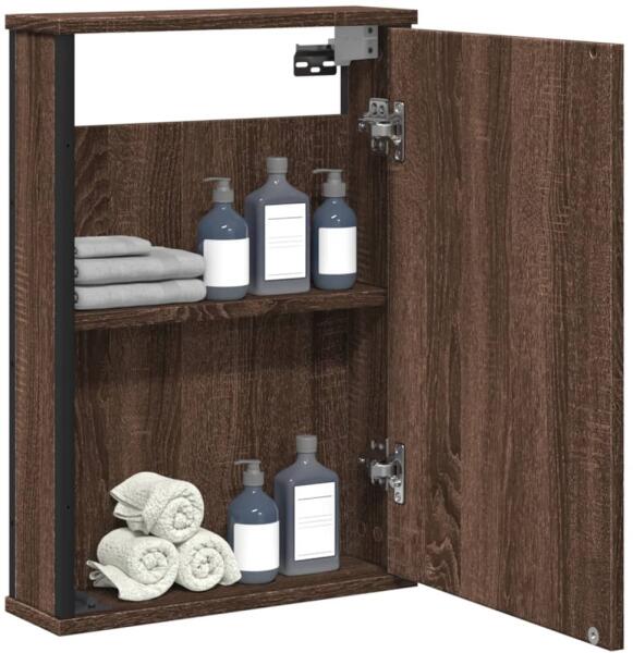 A fürdőszobai tükörszekrény elegáns dizájnja a funkcionalitást és a stílust ötvözi, így tökéletes kiegészítője bármilyen fürdőszobai dekorációnak. Masszív anyag: A szerelt fa kivételes minőségű, sima felületű, szilárd, stabil, és ellenáll a nedvességnek. Bőséges tárolóhely: A tükrös fürdőszobaszekrény kényelmes helyet kínál a nélkülözhetetlen pipere