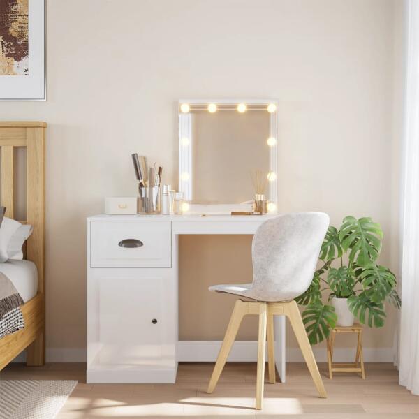 Ez a divatos fésülködőasztal-szett időtlen, kifinomult stílust visz hálószobájába. A LED-es fésülködőasztal-szett hálószobája tökéletes kiegészítője lesz, miközben kézközelben tarthatja kozmetikumait! Stabil anyag: A szerelt fa kivételes minőségű, sima felületű, szilárd, stabil és ellenáll a nedvességnek. Hasznos tükör: A tükrös fésülködőasztal tökélete