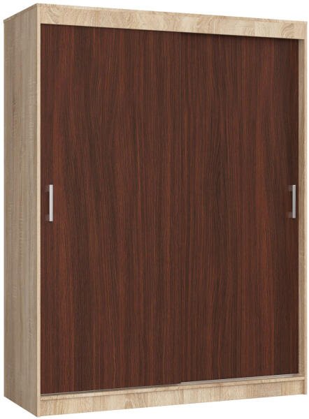 Modern és tágas tolóajtós szekrény sonoma tölgy és wenge színkombinációban. Alumínium sínrendszerrel és praktikus belső elrendezéssel rendelkezik, tökéletes választás a hálószobába vagy gardróbba. Elegáns és praktikus tárolási megoldás az Ön otthonábaEz a 150 cm széles tolóajtós szekrény tökéletes kombinációja a funkcionalitásnak és a stílusnak. A sonoma t
