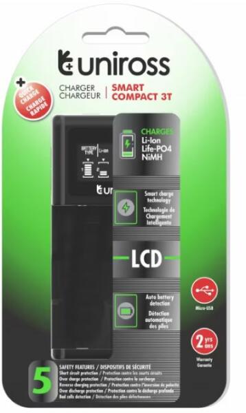 Két töltőfiókos ultrakompakt készülék az optimális töltési teljesítményért. Micro USB és szivargyújtós csatlakozó bemenet. Jól látható LCD kijelző a valós töltési információk megjelenítésére. Töltésvezérlés töltőfiókonként. Behelyezett elemek, hibás akkumulátorok automatikus felismerése. Rövidzárlat és fordított polaritás elleni védelem. Túltöltés e