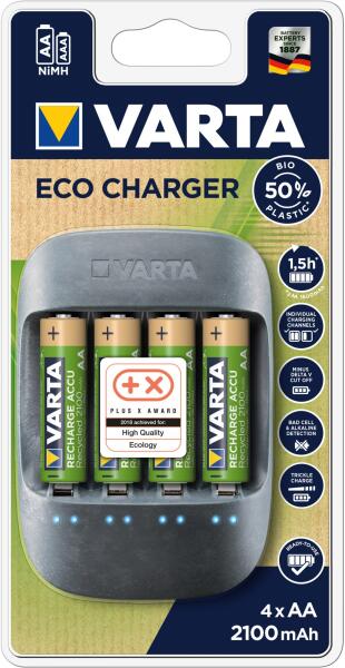 VARTA ECO töltő + 4db AA 2100 mAh akkumulátor A VARTA márka világszerte több mint 100 éve kínál fejlett technológiákat, szilárd teljesítményt és kivételes működést. LED visszajelzés: VanTípus: Akkumulátor töltőTöltési idő (óra): 1,5Kompatibilis akkumulátorok: AA, AAATartozék: 4xAA 2100mAhFérőhelyek: 4