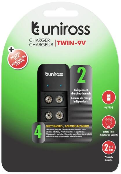 Uniross UCU007 9V-os akkumulátor töltő 2 fiókkal.