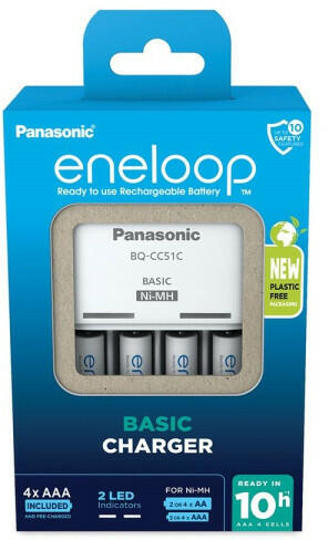 ENELOOP Akkumulátor töltő + 4 db AA/ceruza akkumulátor 1,2 V 1900mAh K-KJ51MCD04E töltőszett 4db 800mAh AAA akkumulátorralMŰSZAKI ADATOKBemenet:AC100-240V 50-60HzKimenet:DC 3V AA 250mA x 2 / AAA 120mA x 2Töltésvezérlés:Időzítő vágás (13 óra)Indikátor:LED x 2 Töltés: BE, Teljesen feltöltve: KITöltő akkumulátor:AA x 2, 4/ AAA x 2, 4 cellaMéretek (kb. ):6,6 x 10,8 x 7,0 cmS