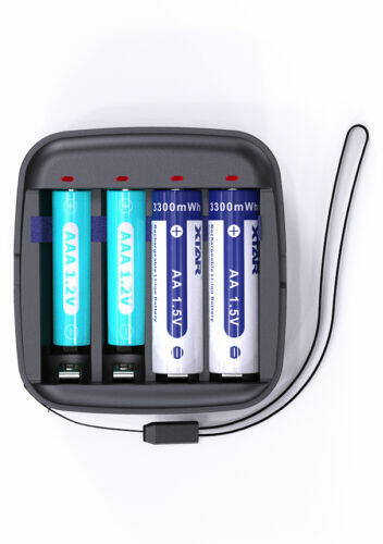 USB-C töltő Sötétkék vagy ZÖLD XTAR 1,5V Li-ion akkukhoz . Jellemzők: USB-C csatlakozás AA és AAA akkuk vegyesen tölthetők Töltési idők: 4 x AA Li-ion akku 1,7 óra alatt 4 x AAA Li-ion akku 1,5 óra alatt Tölthető akkuk száma: 4 db (egycsatornás töltő 4 db töltőhellyel) LED-indikátoros töltésjelzés Üzemi hőmérséklet: 0-40 °C Az 1,5 V-ra konvertált Li-ion akkumulát