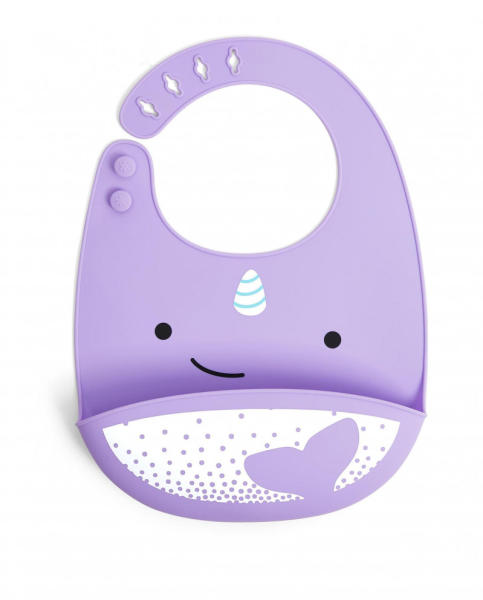 Nagy morzsafogó zseb, amelynek célja a kifolyt, csöpögő étel összegyűjtése a baba etetése során; Könnyű tisztítás és változatos nyakméretek; Érdekes design; Puha szilikonból készült; 4 hónapos gyermekek számára alkalmas; BPA mentes; Méret: 24 x 1,8 x 32 cm.