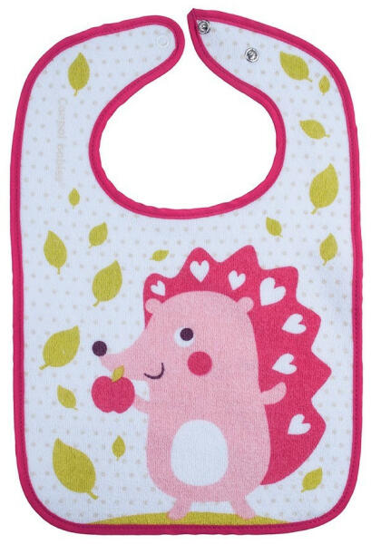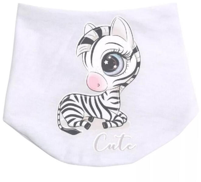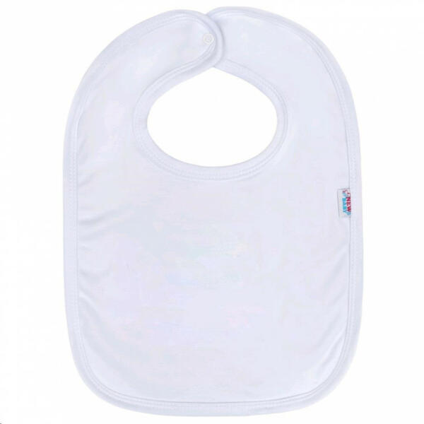 Aranyos baba pamut előke New Baby. Az előke fehér szegéllyel rendelkezik, és két réteg pamutszövetből készült. Patentos rögzítés. A baba előke megvédi a baba ruháit a szennyeződéstől evés és ivás közben. Anyaga: 100% pamut. Méretek: HxSz kb. 36x26 cm.