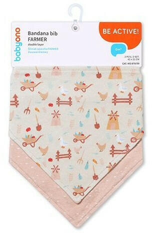 BabyOno háromszög alakú előke. A patenttal összekapcsolható textilelőke vagány kis kendő benyomását kelti. Használata újszülött kortól ajánlott.