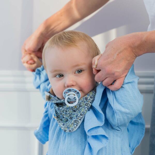 Exkluzív BIBS kiegészítő időtlen Liberty mintávalIkonikus BIBS × LIBERTY kollekció! A BIBS muszlin előke 100% ÖKO-TEX minősítésű muszlin anyagból készül. A prémium babakiegészítő praktikus darab: használd bátran a BIBS cumik tárolására alkalmas kis zsebet, miután a patentokkal felerősítetted a nyálkendőt. A kiegészítő mindkét oldala használható: egyik Liberty m
